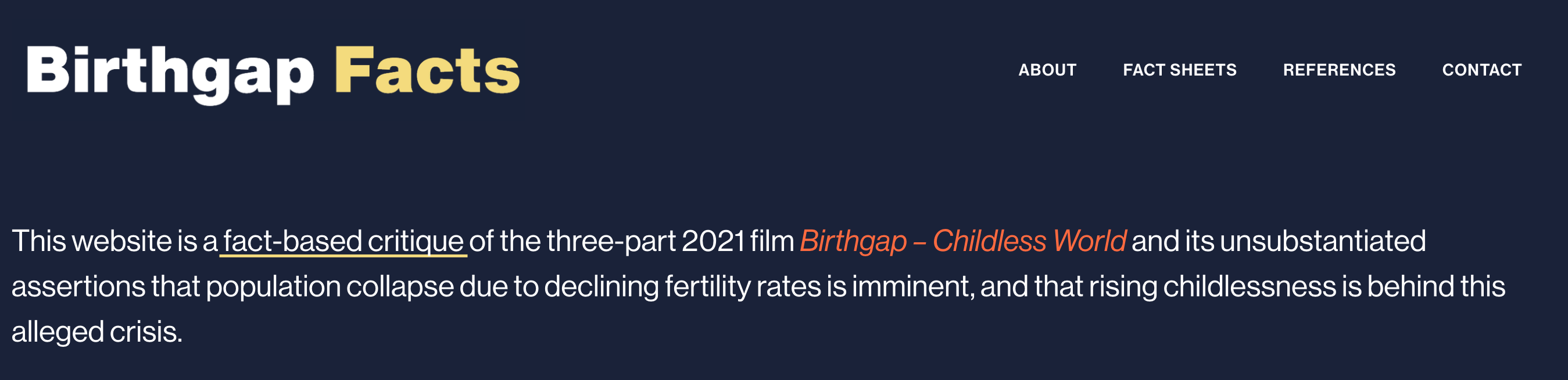 Just as our population blasted past 8 billion, one such bloke, Stephen Shaw, released Birthgap – Childless World, a film which pins the planet’s “collapsing birthrate” on the “pitfalls of Feminism and the modern dating-world”. Not one to be far from the limelight, Musk makes a special appearance. In the film, Shaw claims declining birth rates are not due to smaller family sizes, but due to “an explosion in childlessness” in women, claiming such childlessness often leaves women “regretful, lonely, and frankly confused about how life worked out the way it did”.